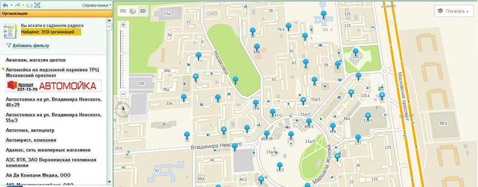 С клиентами данного сегмента емкость определяется аналогично клиентам, находящимся в жилых домах, по картам 2ГИС (Рис 2).